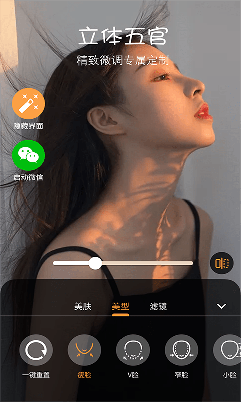 照片美化相机app是一款美颜功能强大的相机软件,不仅可以帮助用户在自拍的时候立体五官,让肌肤更加水嫩,在和自己的好友进行视频通话的时候也可以使用美颜来聊天,照片美化相机安卓版下载后用户还可以自行调节面部的各项数据,保存数值之后一键就能够使用。