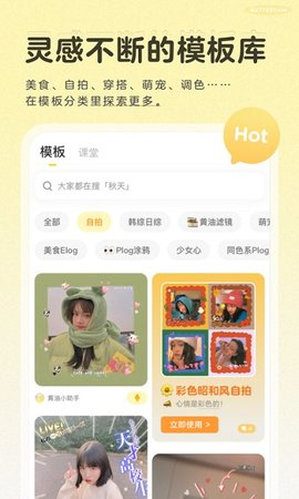 黄油相机是一款在线拍照管理的软件。为用户提供了便利的相片编辑模式,为你的进行图片大小的切割,让你的每一张照片都美美的,用恰到好处的方式表达自己的情绪,喜欢的用户快来下载。