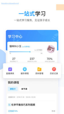 3、学习中心:没有学过的新课在网上一目了然,记录你的学习进度