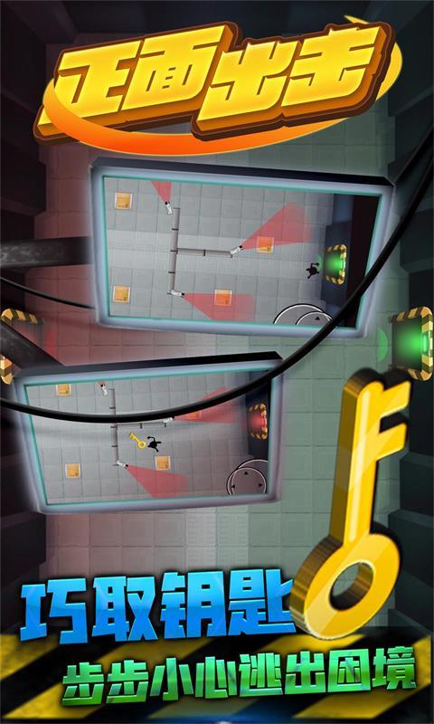 正面出击是一款火柴人题材的冒险逃脱类游戏,不断搜索,寻找更多的线索和钥匙,解开谜题,关卡多多,时刻小心周边的敌人,危险重重,可玩性强,注意躲避灯光的照射,灵活走位,规避风险,激情历险,解锁更多的关卡,发现更多的道具,帮助你更加顺利的通关,无聊空闲玩玩还是很重要的,趣味解压,很好的放松身心,携手好友一起冒险更加的欢乐,一起游戏,享受游戏每一时刻!