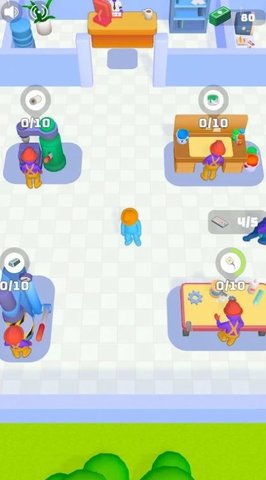2、玩家一开始只有一台机器和一名员工,此时他们的机动性很弱。