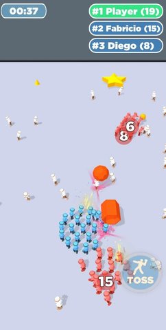 投掷大竞技是一款以投掷为主题的竞技射击类游戏。在游戏中,玩家需要靠近小白人渲染成自己队伍的颜色,也可以获取游戏中的物品,靠投掷向敌人射击,壮大自己的队伍。最后成为赢家。