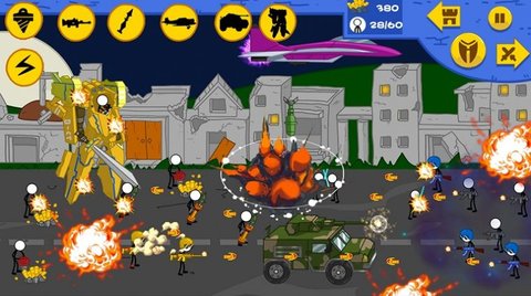 1、每个部队的外观都不一样,玩家可以看到火柴人拿枪,火柴人拿坦克,火柴人拿喷火器等等。这些是没有限制的;