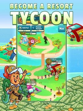空闲假期大亨是一款有趣的休闲入门游戏。曾经梦想过建立自己的热带天堂吗?想成为度假胜地的大亨?想度假吗?那么空闲假期大亨是完美的休闲度假游戏为您!慢慢的增加自己的财富,游戏的可玩性还是很高的,整个游戏的画面设计都很精致,体验也很不错,还是很有趣的。感兴趣的小伙伴快来下载体验吧!
