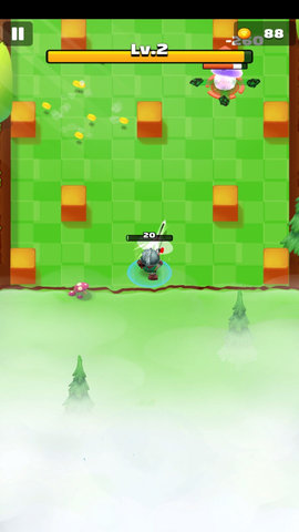 2、使用垂直控制模式,玩家只需按下虚拟操纵杆即可控制角色的动作。在通过关卡的过程中,我们可以随机获得各种道具或buff。