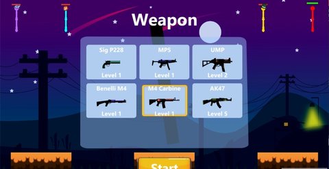 4、火柴人在关卡中无限枪战,可以更换不同的武器,根据不同的情况进行选择,获得非常真实的射击感觉。