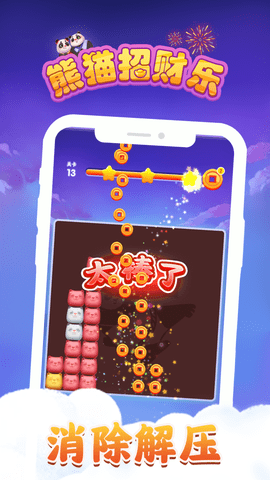熊猫招财乐是一款非常好玩的休闲类手机游戏,游戏的玩法是比较有趣的,有多种模式任你选择,每过一关难度都有一定的提升,玩家必须清除所有的方块才能拿到更高的分数通关,欢迎下载