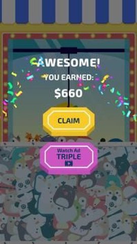 2、轻松放置闲置游戏,看时间,抓住娃娃,赚取收入;