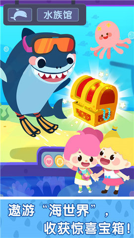 3、水族馆:大型水族馆,听说水族馆有丰富多样的海洋生物,迅速穿上潜水服,潜入水族馆看一看。眼睛里鼓起的水鱼,一只跳舞的水母。彝语为什么有一个宝箱?打开它,看看里面有什么。