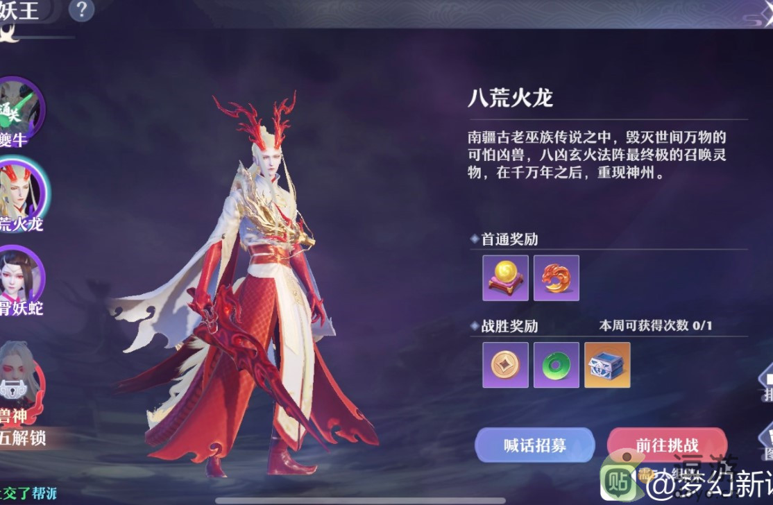 梦幻新诛仙八荒火龙是最近游戏更新推出的新的妖王,很多的玩家们都打不过,因为它的技能实在太厉害,不过掌握正确的打法就能够轻松打过,小编这就为玩家们介绍一下!