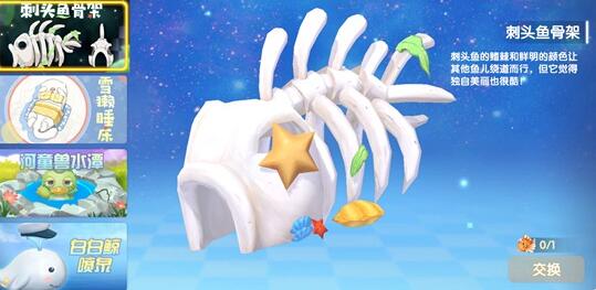 3、选择“刺头鱼骨架”,点击“兑换”,就能消耗“刺头鱼”完成兑换了。