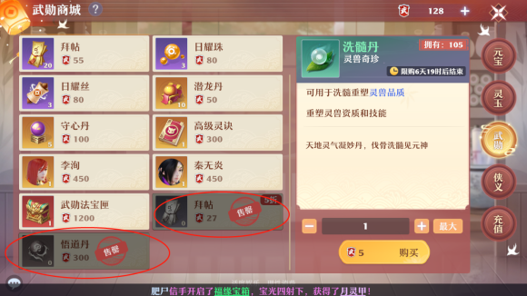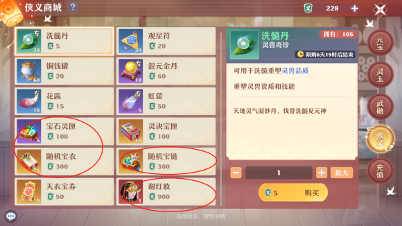 4.每周的悟道丹必买,这个要攒着,悟道丹的效果是直接可以洗出变异,至少为你省价值50W银币的洗髓丹;