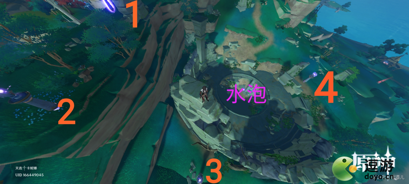 然后回去攻击1柱,1柱会射出电球最终打破水泡。