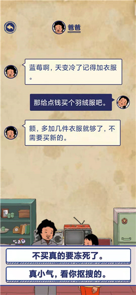 蓝莓:那给点钱买个羽绒服吧。