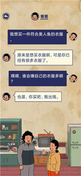 爸爸:原来是想买衣服啊,可是你已经有很多衣服了。