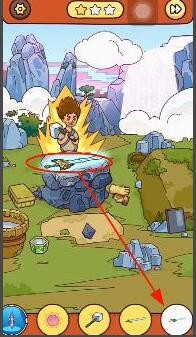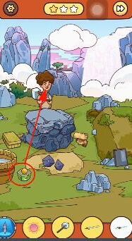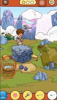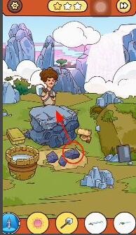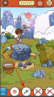 找到石头右边地上的一双手套。将脏脏的手套拖动到水桶里面;