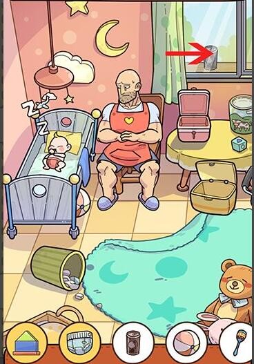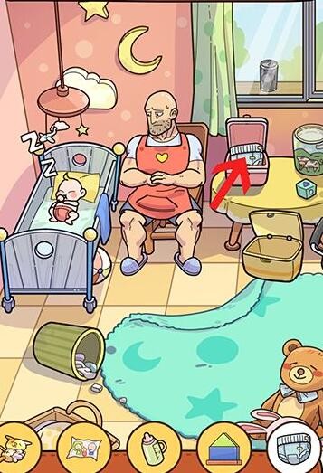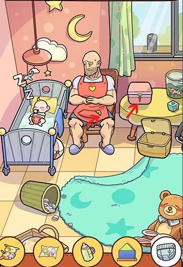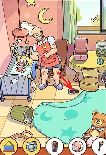 6、点击奶爸口袋里的钥匙,开启桌子上的箱子,点击尿不湿收起。