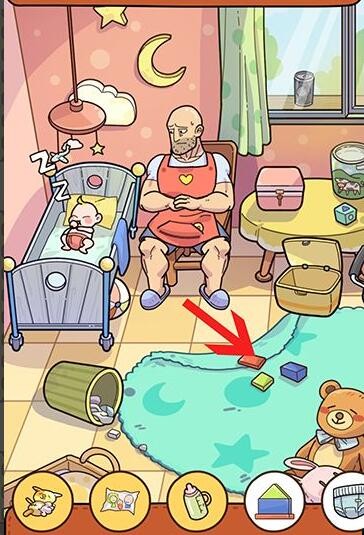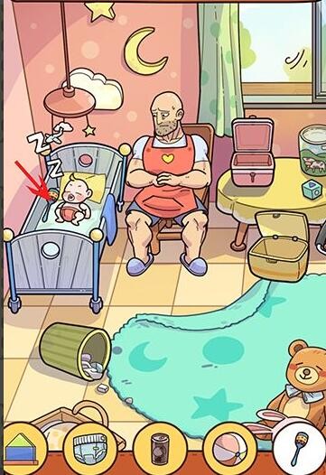 9、来回滑动婴儿床,婴儿睡着后,点击手摇铃收起,奶爸的日常通关成功。