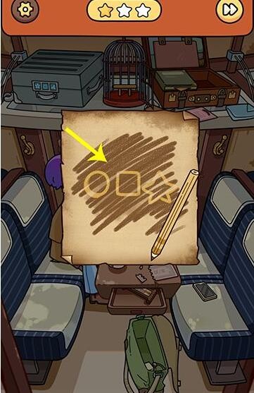 6、点击抽屉里的铅笔,放到行李箱的左边书籍处,出现纸和铅笔后,拖动铅笔涂抹,发现三个符号