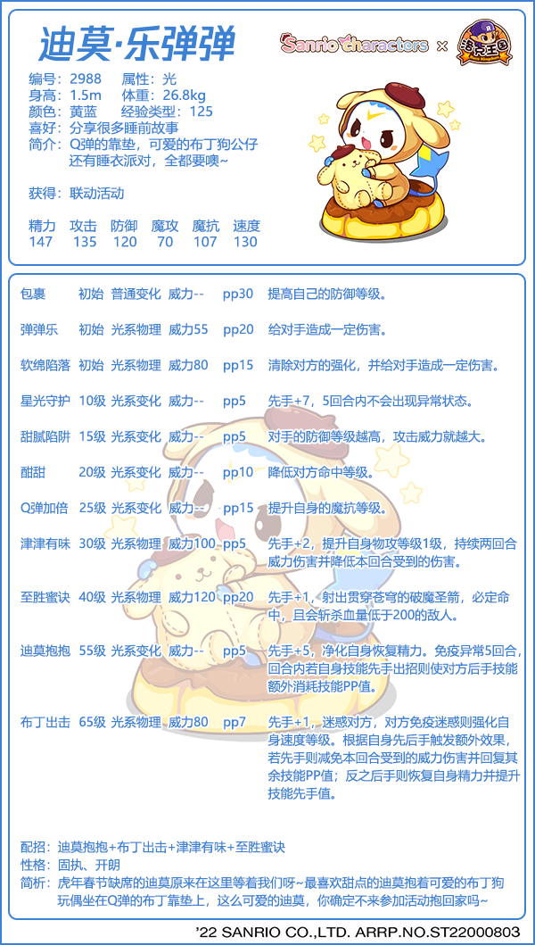 3、简析虎年春节缺席的迪莫原来在这里等着我们呀~最想要甜点的迪莫抱着乖巧的布丁狗玩偶坐在Q弹的布丁靠垫上,这么乖巧的迪莫,你确定不来参加活动抱回家吗~