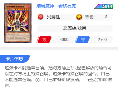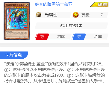 熔岩魔神,这张阴间卡组的最爱,终于站上了卡组核心的地点。他的烧血效果只是附送,关键就是减少对面的攻击频率。之后我们用来通招的七星怪要选用不用祭品的,我选择疾奔的暗黑骑士盖亚,可变机兽应该也可以。