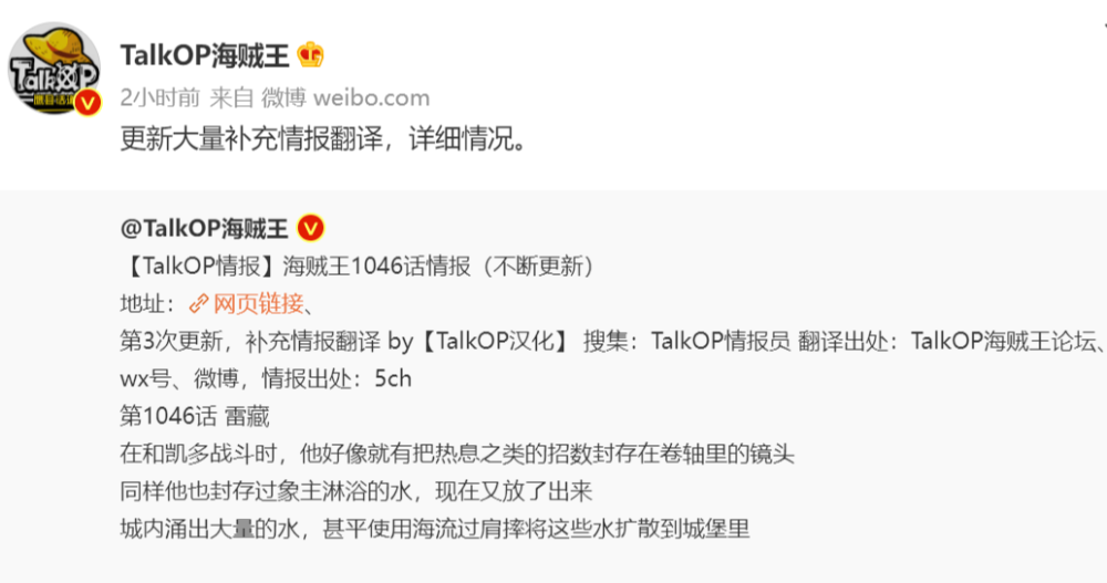 从更新的海贼王漫画第1046话的情报当中,路飞使出雷电能力,虽然令人惊讶,可战况依旧是五五开,并且与凯多大战的篇幅寥寥无几。反倒是赤鞘九侠的雷藏出镜率极高,一个人撑起了一整话,毕竟标题就是雷藏,这是他的个人专场。