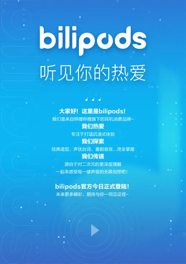 鞭牛士 4月6日消息,今日,B站正式公布旗下自有耳机消费品牌“bilipods”,官方账号也在B站和微博同步上线。