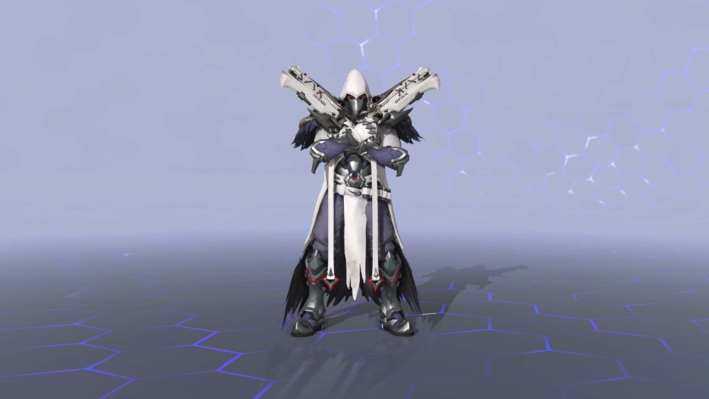 六款换色新版本传说皮肤包括:“苍鬼”源氏、“煞白铁鸦”死神、“婀娜法师”天使、“白钢哈特”莱因哈特、“白猫露娜”D.va、“狂热信徒”禅雅塔。