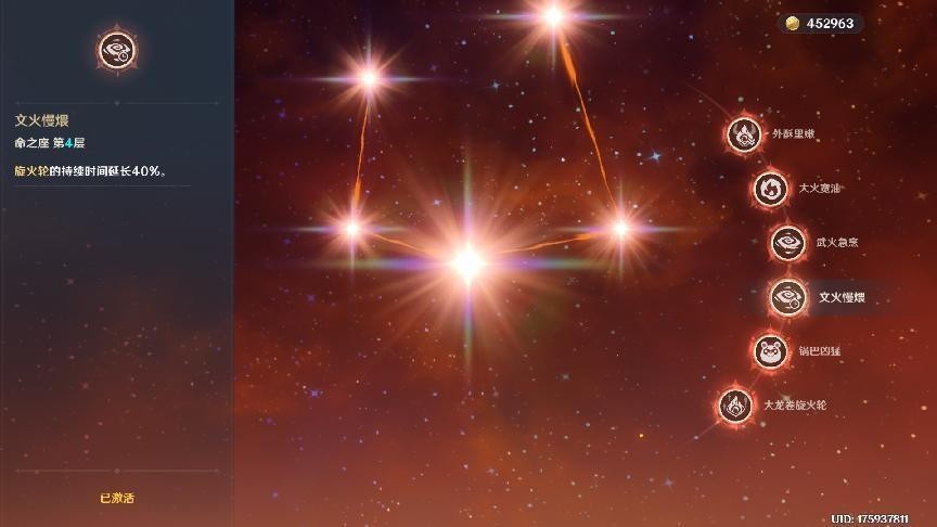 香菱是一位脱手C,因为大招锁面板的机制才混得风生水起,作为一个dps,保障输出才是重要因素。纵观香菱整个命座,只有3、4、6是增伤大招的命座(1命勉强算吧),而能大幅度增伤的就是第4命座,本来10秒的大招延长至14秒,大招的倍率一下提升40%。