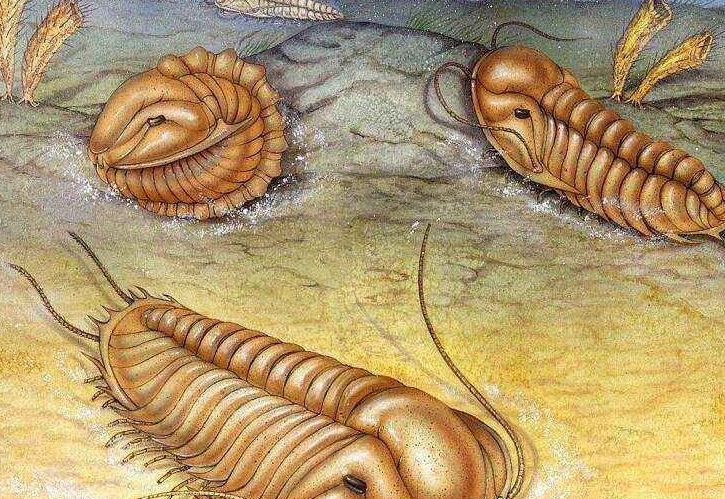 而说回三叶虫,三叶虫是于寒武纪出现、于二叠纪末灭绝的生物,为了适应环境,三叶虫演化出了一个庞大的家族,鼎盛时期家族势力非常庞大,但是耐不住经过奥陶纪大灭绝以及二叠纪末大灭绝的两次灾难,曾经一度繁盛的三叶虫再起不能;虽然三叶虫种类很多,但是标志性的外观为卵圆形或椭圆形,身体分为头、胸、腹三节,贝壳则有三个叶体,二叶位于纵向轴叶的每一侧,因此被称为“三叶虫”,三叶虫还有着多体节,所以外形特征非常明显(上图为现实三叶虫的想象图)。