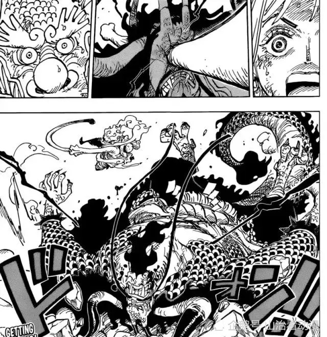 五档路飞与凯多的交战开始刚刚开始,两人的战斗非常搞笑,画风突变,尾田是不是改变画风了?还是他助手帮忙画的,在关键之战改成搞笑画风,怎么看都不适合生死决斗。五档路飞是太阳神尼卡,他拥有无限复活的力量,五档模式很消耗体力和生命力,路飞只是战斗几个回合,体力就消耗殆尽了。