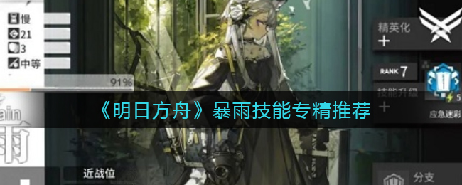 《明日方舟》手游中暴雨是新上线的五星干员,那么很多小伙伴想晓得她的专精选择哪个好,相信还有很多玩家不清楚,对此菜鸟小编特地为小伙伴们准备了相关的详细内容,让我们一起来瞧瞧吧!