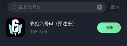 2、进入加 速器之后,玩家可以找到彩虹六号M(预注册),点击加速。