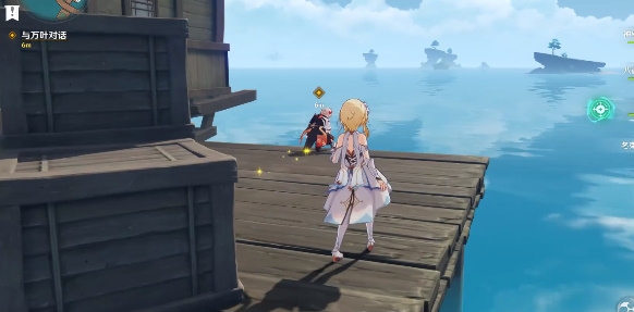 1、前往离岛码头与万叶对话,开启薄墨淡朱新绘任务。