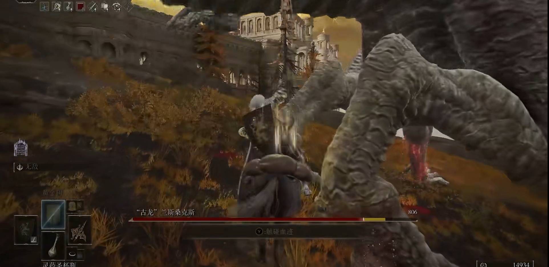 5.上来后等几秒钟古龙便会从城堡里飞下来。