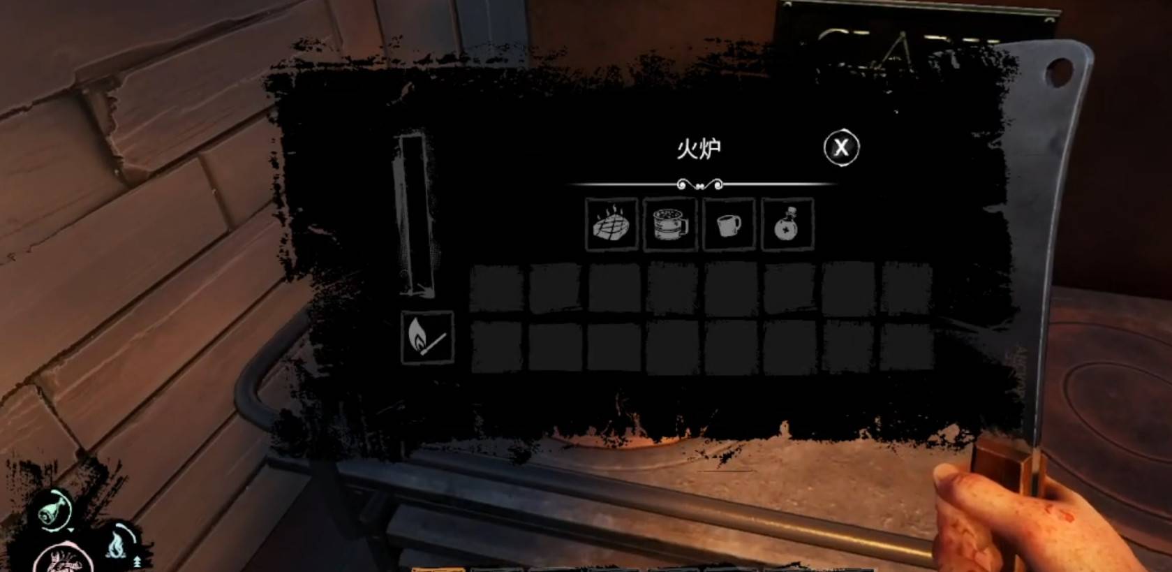 1.厨师这个角色开局自带一把刀,除此之外就没其他亮点了,我们的任务就是寻找食物做饭分给其他小伙伴,防止狼人下毒。