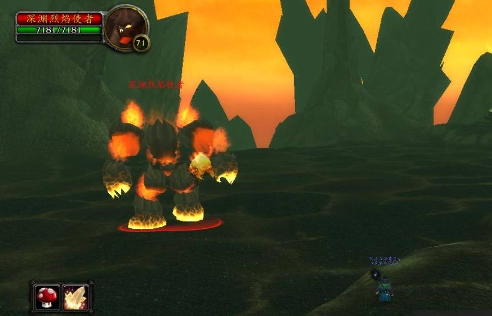 2、找到下面这样的红色的地狱火,然后打败。在尸体旁边使用背包里面的烹饪锅,就能够制造出相对应的任务物品【恶魔烧烤】。