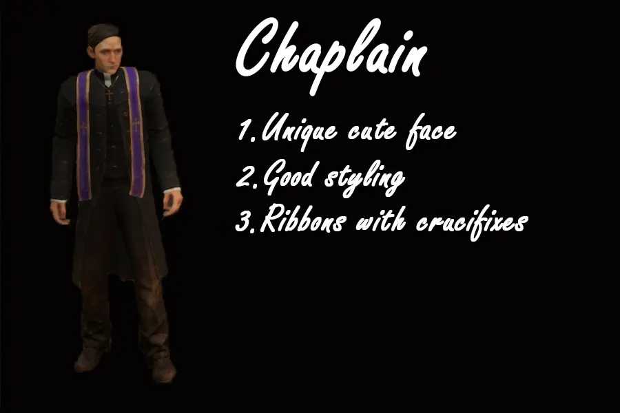 牧师主要工作就是挖坟,找武器和其他物资。牧师有着较容易辨认的特征,一条紫色金边带有十字架的围巾。