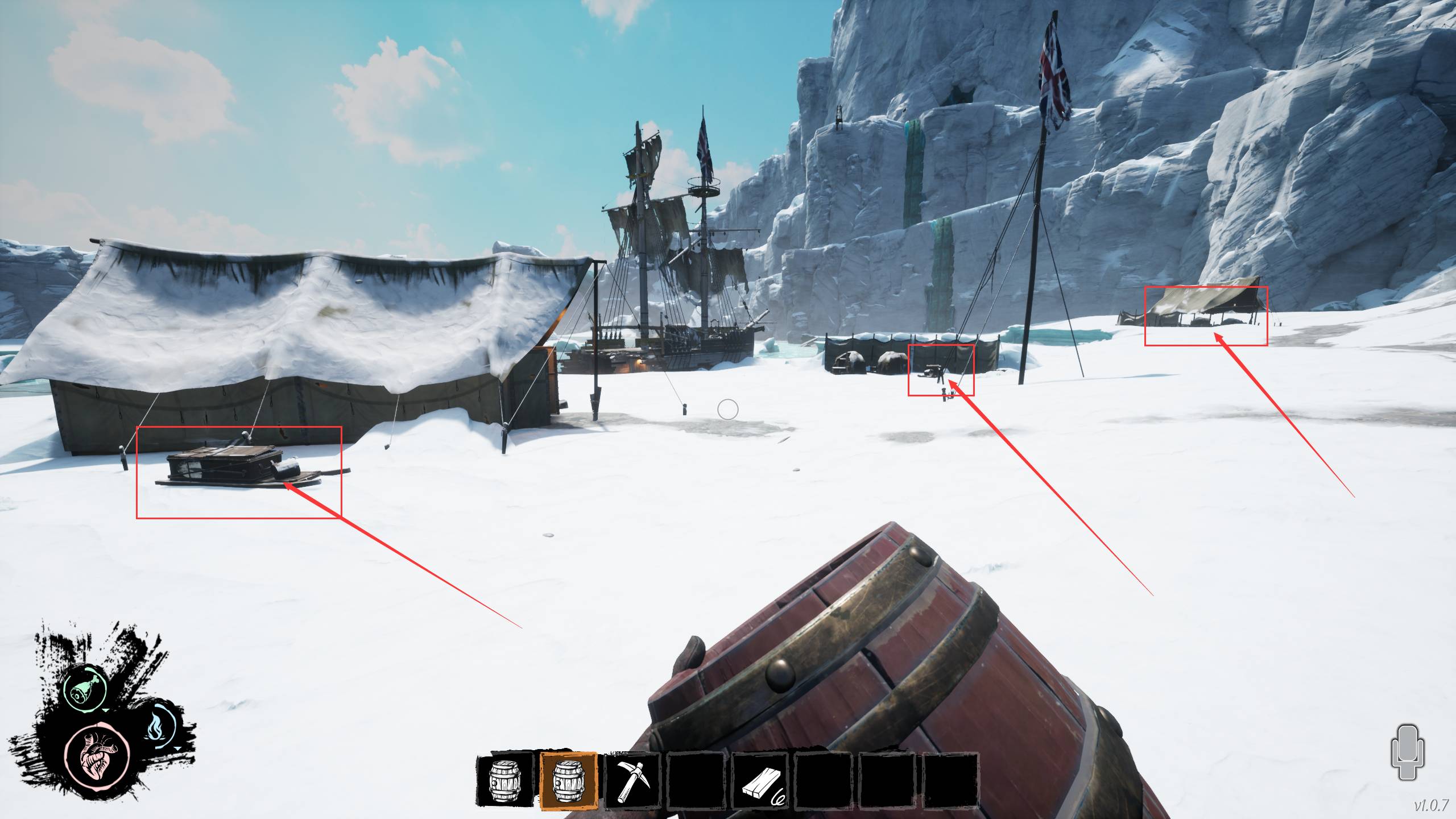 5.如果导航能够成功将上面两个位置的煤炭所有拿完,那么加上其他队友拿的煤炭,一般船是可以开到冰山脚下的,此时导航便可以跟随队友一起去杀熊,拿甘油并炸冰山了。