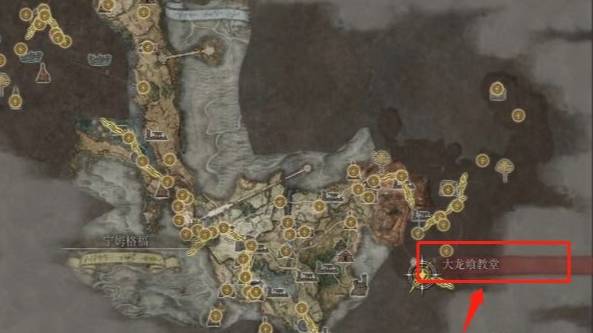 1:首先,运行艾尔登法环,打开地图选择大龙飨教堂,点击传送。