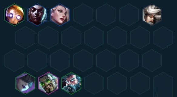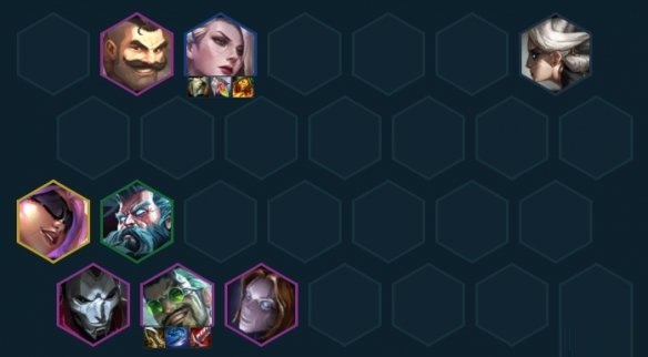 决赛圈直接上九找五费外援,单挂塔姆、杰斯、卡莎、爆爆都可以,如果有相关执事/考验/精密的海克斯或是转职可以考虑开对应的高羁绊,总体思路围绕着增幅和保护德莱文和泽丽两个大C去构筑阵容即可。