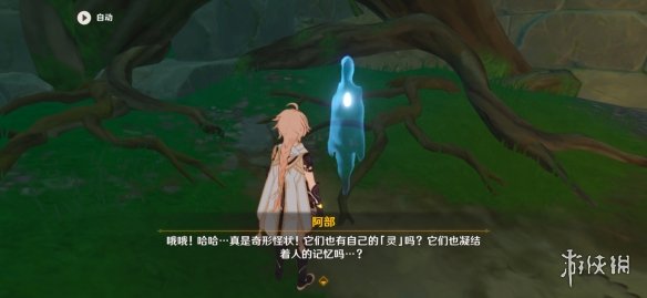 来到我们看到图的位置,相信这里火把做过之前任务的小伙伴已经点亮了,我们现在注意小鬼魂位置应该是一堆“幽灯蕈”,第一次采冒出一次小鬼魂阿部然后就消失了,等第二天再来采集时候阿部就出现了。