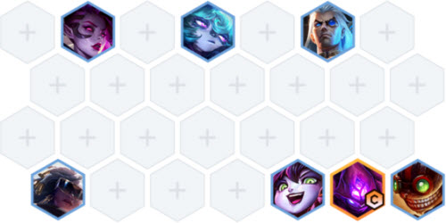 莫甘娜、薇古丝、斯维因这三张大肉顶在最前排,其余脆皮在后排一字排开即可。