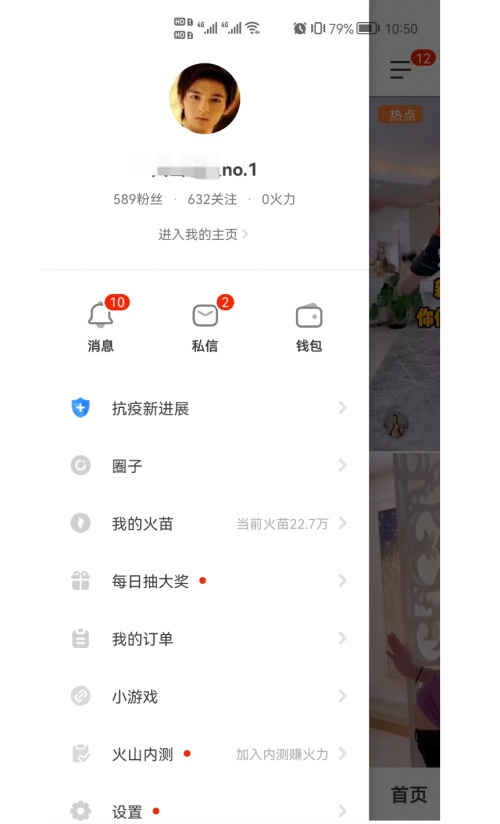 第一步打开抖音火山版app点击左上角“三”