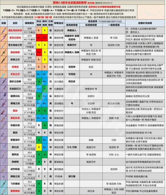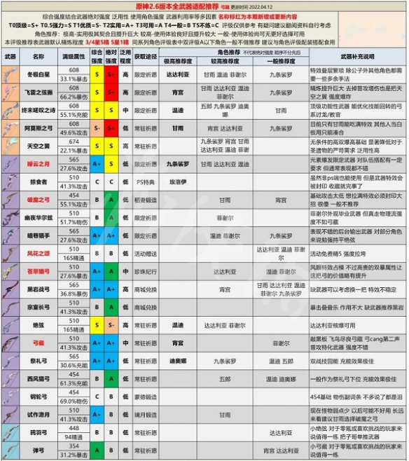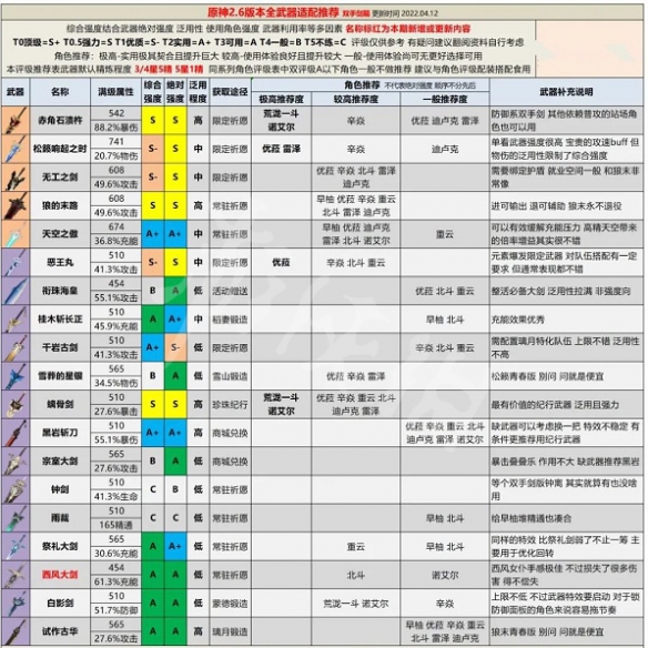 原神2.6版本全武器强度是什么,很多玩家还不清楚2.6版本哪些武器比较强,下面一起来看一下菜鸟小编带来的原神2.6版本全武器强度分析。