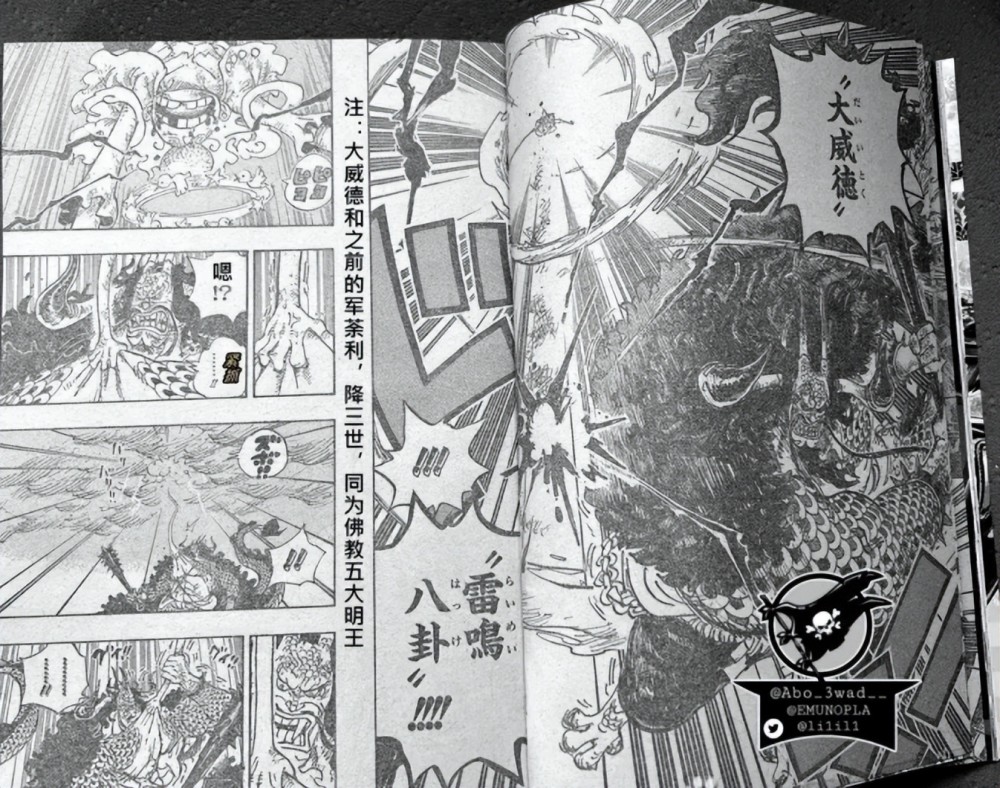 在1047话的内容中,路飞与凯多的战斗仍尚未分出胜负,而本以为凯多会再次用出什么新招式的海迷也发现,凯多虽然是在雷鸣八卦前面加上了一个大威德而已,顶多也就能算是一个加强版的雷鸣八卦而已。