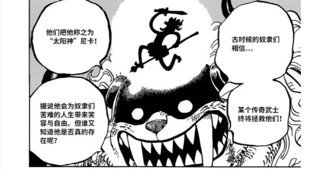 首先对于尼卡这个角色来说,最开始出现海贼王漫画中1018话中的尼卡是借福兹福在监狱中所听到的故事提出,并认为他能够拯救所有的奴隶们,让奴隶们摆脱痛苦并走向欢乐和幸福。