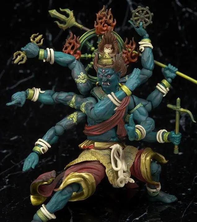 “降三世·引奈落”对应的就是五大明王中的“降三世明王”,降服贪嗔痴三毒与三界,故称降三世。其形象三面八臂,或四面八臂,色青。手执各种武器,背负火焰,表对治烦恼之意。