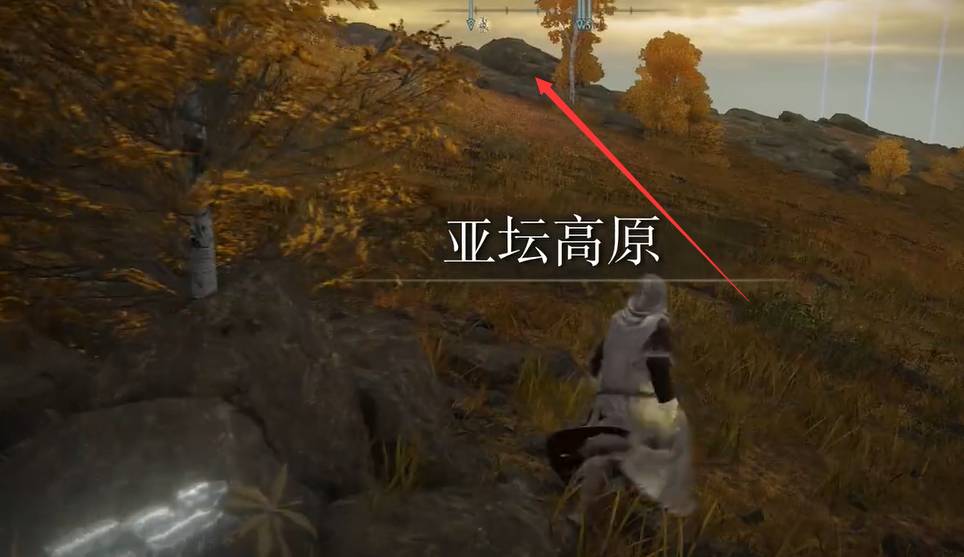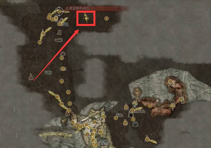 1、首先我们打开艾尔登法环手游地图,找到近橙金树的山丘右边的地点,如下图所示