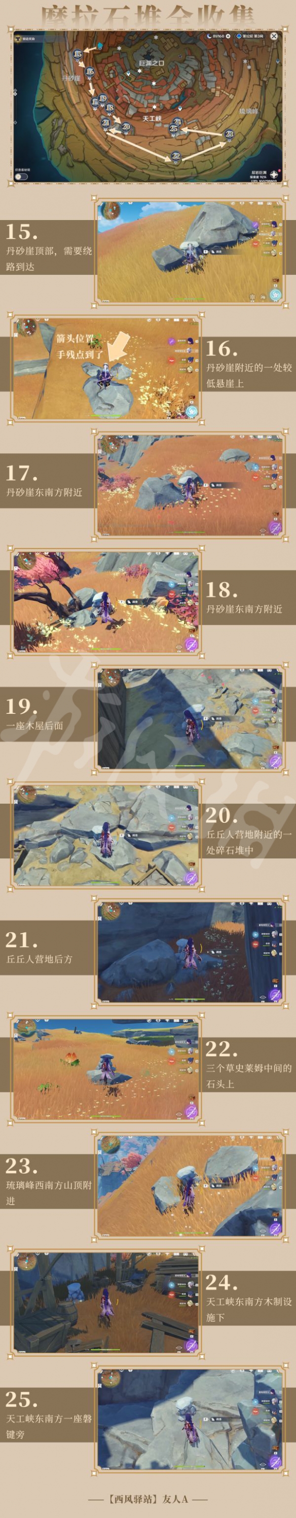 2、每个石堆调查后可获取1w~2w摩拉不等(1w、1.5w、2w三个档位);